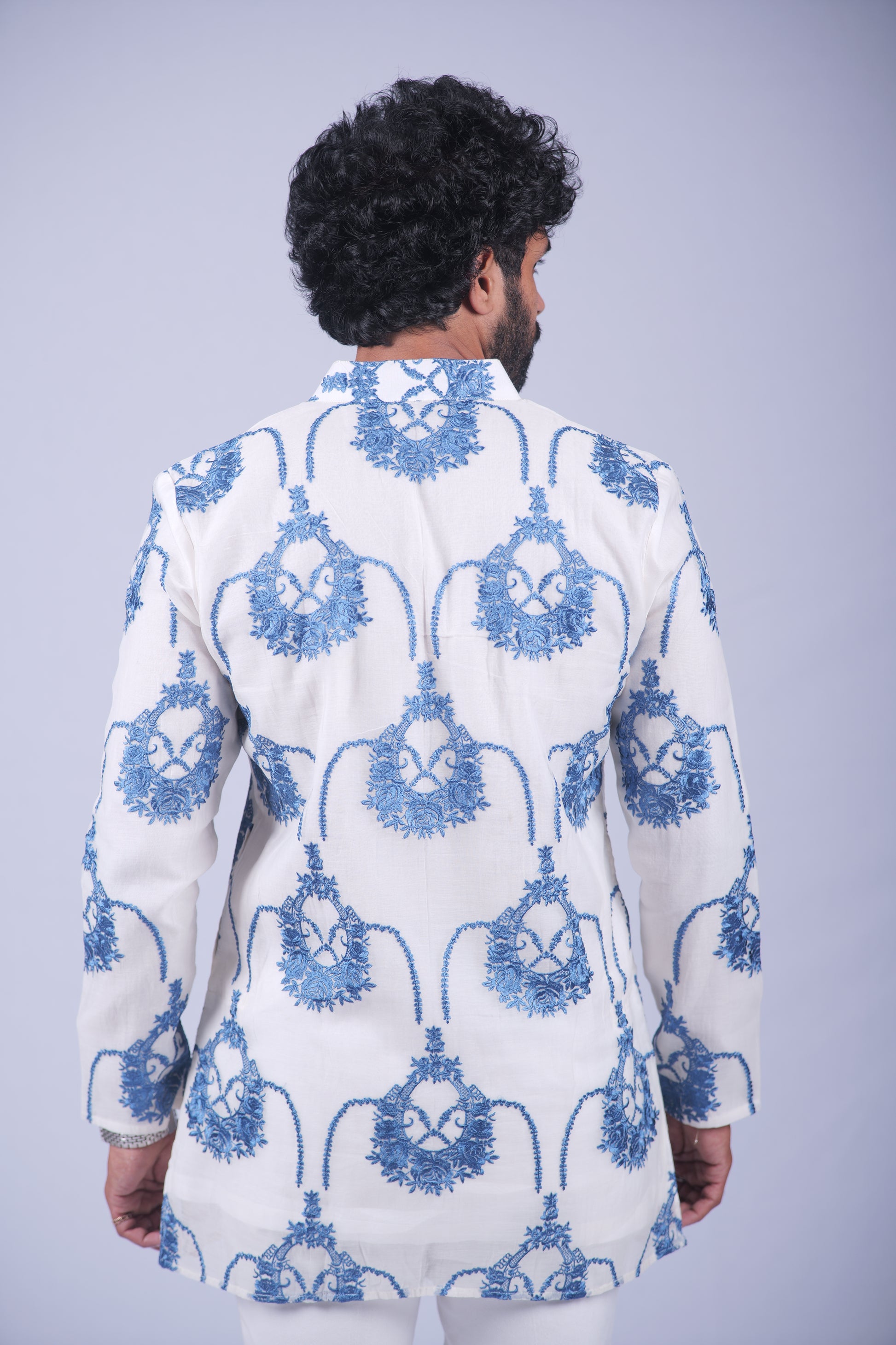 Inspired by the serenity of a winter morning, the Arctic Bloom set is a breath of fresh air for your festive wardrobe. This light blue ensemble is crafted from premium Cotton and serves as a cool, tranquil backdrop for our signature embroidery. Each bloom is meticulously stitched to capture the light, offering a sophisticated sparkle that feels both modern and timeless. It is designed for the man who appreciates subtle color and impeccable detailing.
